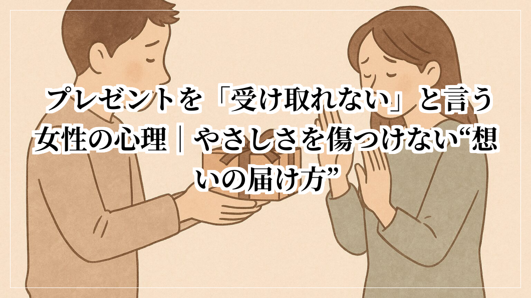 プレゼントは本来、気持ちを伝えるためのもの。 けれど時には、どうしても受け取れない事情やタイミングもありますよね。 そんなとき、「断る=悪いこと」ではありません。 むしろ、相手への思いやりや誠実さが表れる行動でもあります。 この記事では、プレゼントを断るときの心理や伝え方、 そして断られた側がどう受け止めればいいかまでをやさしく解説します。 相手を傷つけずに気持ちを伝える方法を知れば、関係はもっと穏やかに保てます。 この記事でわかること 人がプレゼントを断るときの心理と背景 相手を... 贈り方のヒント