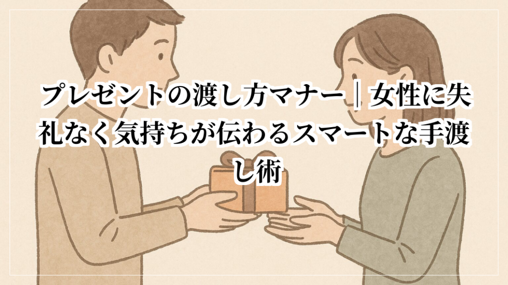 どんなに素敵なプレゼントを選んでも、渡し方ひとつで印象は大きく変わるもの。 特に女性への贈り物は、タイミング・言葉・渡し方の3つを意識することで、 「センスがいい」「気遣いが伝わる」と感じてもらえるチャンスになります。 この記事では、女性に失礼のないプレゼントの渡し方マナーを、シーン別にわかりやすく解説。 スマートに渡すための言葉選びやしぐさのコツも紹介します。 好印象を残すプレゼントの“渡し方のトリセツ”として、ぜひ参考にしてください。 この記事でわかること 女性に失礼のないプレ... -